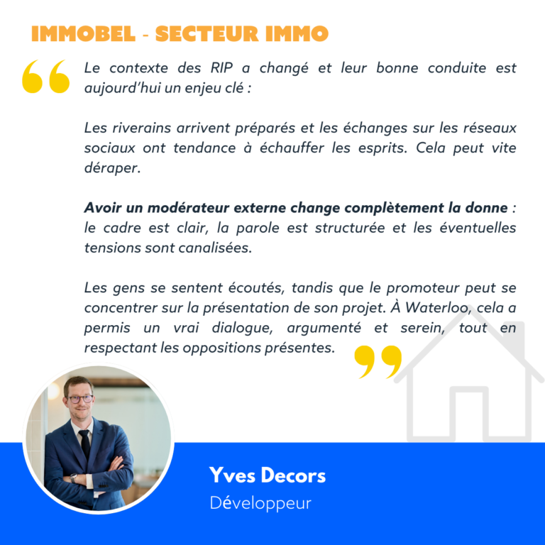 Si vous préparez une RIP, un débat sensible ou une réunion publique à fort enjeu (urbanisme, environnement, mobilité, santé, patrimoine…) : modérateur.be vous accompagne de la préparation à la restitution, pour que la parole circule, sans que la soirée ne déraille.